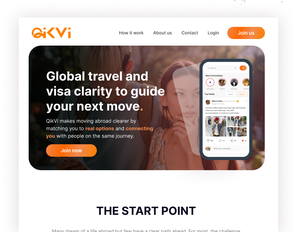 QikVI helps you discover study abroad, work visa, immigration pathways, and travel options that fit your life. You get clear choices, real people, and next steps in one place.
